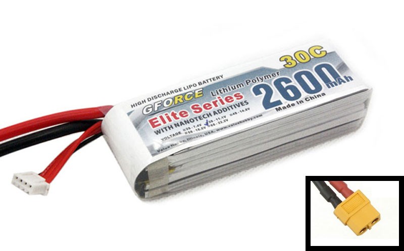 GForce Elite Series 30C 2600mAh 3S 11.1V LiPO (XT60 Connector)